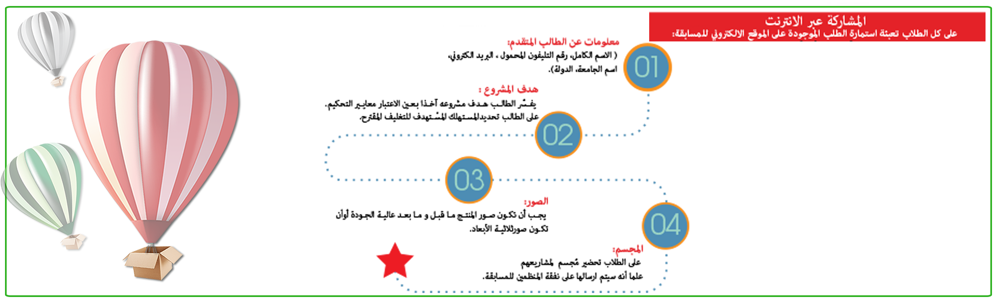 سيتم استبعاد الطلبات التي تتعارض مع القواعد العامة للمسابقة او الطلبات الناقصة من الصور أو من فكرة المشروع.